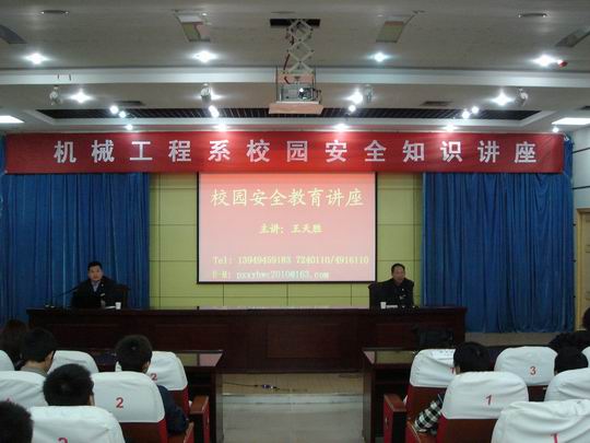 4月9日,机电学院机械工程系聘请我院保卫处王天胜科长在图书馆一楼讲座厅给该系同学们做了一场题为《安全,从我做起,从现在做起》的校园安全知识讲座。机械工程系全体学生干部及部分同学聆听了讲座。讲座由机电学院党总支书记刘栓榜主持。
