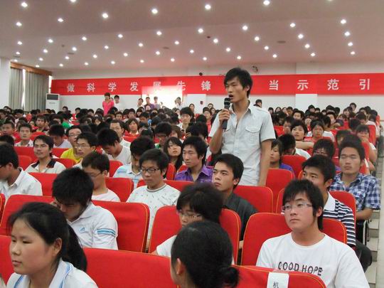 讲座最后,张铁岗对广大学子提出了几点谆谆教诲,此之谓以知导行。他说,作为在校或即将参加工作的大学生,其一要多参加实践活动,尽量到基层接受锻炼,在生产岗位的前线上多多掌握第一手资料,使自己有根据可依、更有说话权。其二要充分意识到创新的重要。理论创新、科技创新、实践创新是推动一项工作、一项事业发展的源动力。我们必须时刻牢记创新、勇于创新。这样可以使我走在时代的前列、突破发展的局限。其三要有奉献精神,做一个为人民服务的人。我们的事业离不开集体的支持,我们要依靠身边的群众,服务于身边的群众,投身于为人类服务的伟大事业。