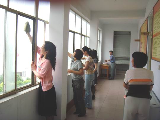 思政部9名党员利用业余时间打扫了2号教研楼4楼,经过一个多小时的打扫,走廊玻璃、地面、宣传展板变得更加干净、整洁。该部全体党员以自己的实际行动为群众树立了榜样。(崔伟玲)