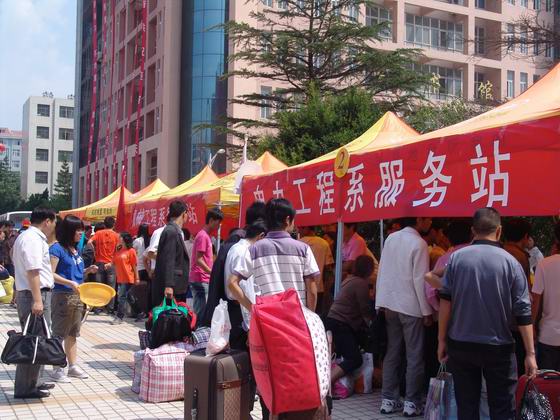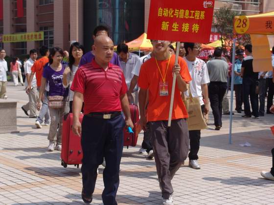 为了新生报名的快捷迅速,学院在综合馆内设立了报到审核处、学籍注册处、被褥领取处等一条龙亲情服务。软件学院、化工系等院系特别印制了服务名片,把老师联系电话、新生注意事项等温馨提示标注其上,以便及时为新生和家长解决困难。学生志愿者在几十名志愿教师带领下情绪高昂,接站的校车刚停稳,志愿者们就热情的围拢上去,亲切问候,接过学生及家长手中的物品,引领新生办理相关入学报到手续。化工系尹锦锋副书记说:“由于今天报道的新生人数多,我们系好多志愿者都没有时间去吃午饭,他们为新生服务的热情干劲,令我们系师生很受感动”。志愿者杨楠颖、陈旭东笑着说:“虽然我们忙的午饭没有吃,但能够让学弟学妹们感受到家的温暖,顺利地报名,累点饿点心里也甜”。报到现场气氛热烈紧张,工作有条不紊,井然有序,截至到北京时间下午4:30,就有3127名新生办理完入学手续。
