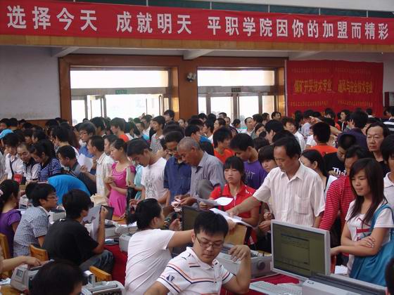 8月28日,是我院2010级新生报到的第一天,随着新生报到人数的增多,昔日宁静的校园变得热闹非凡,到处充满欢声笑语。2号教学楼前,各系部的志愿者们不畏酷热,手举招牌热情迎接新同学,“欢迎你的到来”、“您辛苦啦”、“有什么需要我帮助的”等一句句温馨的深情话语,饱含着平职人的热烈欢迎之情。在“学海英姿”雕塑下,一位来自南阳的家长说:“看到你们学院大门‘博学睿思、厚德笃行’的校训,显示出平职学院深厚的文化底蕴和对学生求学尚德的要求,孩子选择这里,是正确的,把孩子交给学校,我放心。”