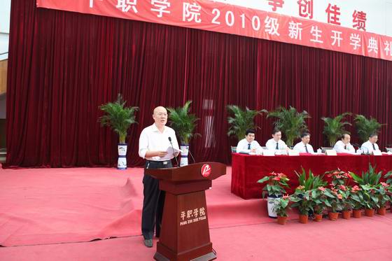 院长仵自连教授首先发表了热情洋溢的致辞,他回顾了学院光辉而不平凡的发展历程,向新同学介绍了近年来,学院以改革为动力,在全面建设国家示范性高职院校、创建全国文明单位,促进学院又好又快发展的进程中所取得的辉煌成就。仵院长说:“同学们,你们怀着美好的憧憬来到了平顶山工业职业技术学院,迈出了人生的重要一步。作为院长,我真诚地希望你们能够珍惜三年的大学时光,不断加强学习,努力提升素质,真正做到学有所成、学有所获。”