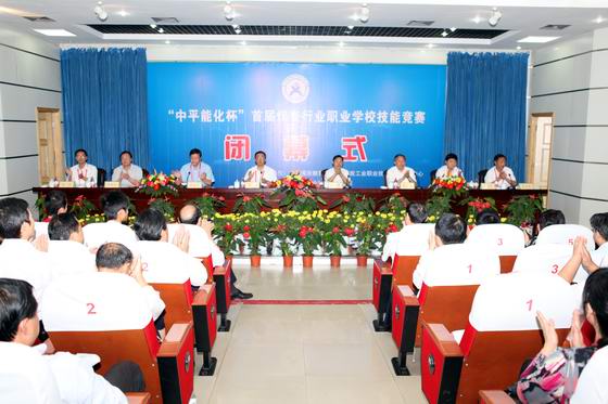 “中平能化杯”首届煤炭行业职业学校技能竞赛在平职学院经过两天紧张激烈的角逐,圆满完成赛会项目,于9月20日在我院落下帷幕。中国煤炭教育协会理事长邱江、中煤教育协会副理事长兼秘书长李增全,集团公司副总经理杨建国、我院院长仵自连,院党委常务副书记蔡志刚、副书记郑运廷、副院长李树伟、王任远、工会主席张立方等学院出席闭幕式并为获奖选手颁发奖牌和荣誉证书。