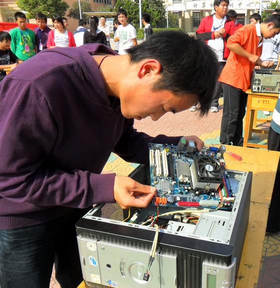 本网讯(通讯员 张会喜)为提高广大同学的计算机应用水平,10月15日,计算机系团总支组织计算机协会、网络协会在升旗广场联合举办计算机组装大赛。