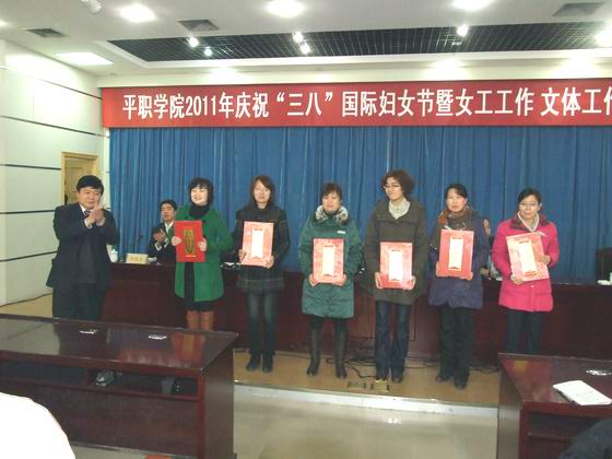 本网讯(范长春)3月5日上午,我院在图书馆报告厅召开“庆祝 “三八”国际劳动妇女节暨女工工作、文体工作表彰会。表彰2010年度 “女职工工作先进单位”、“文体工作先进工单位”等先进集体和个人。院党委书记蔡志刚、工会主席张立方出席会议并为先进集体颁奖。