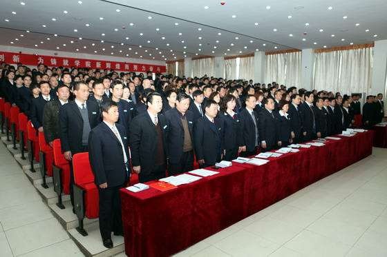 蔡书记最后指出:“干大事者,须心无旁骛、一往无前;成伟业者,必凝神聚气、全力以赴。开创学院更加辉煌的明天,是全体教职工生的期盼,更是我们所有共产党人的光荣使命。希望大家牢记使命、肩负责任,团结一致、奋勇拼搏,为实现十二五良好开局,实现学院新发展,铸就学院新辉煌而努力奋斗!”