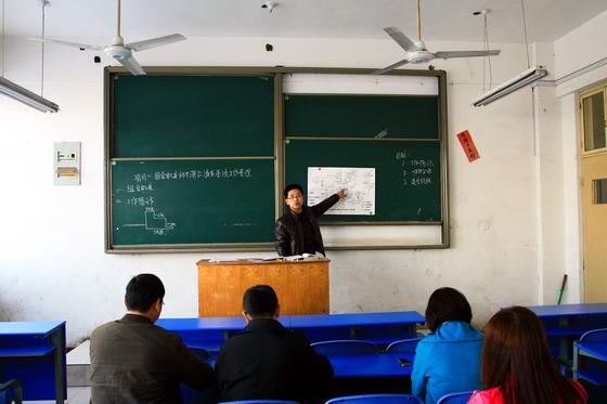 系主任张君说:学院要发展,教学质量很重要,我们对青年教师提出的培养目标是: “一年入门、二年达标、三年创优、四年冒尖、五年成才”,要求培养部门和培养人必须对所培养的青年教师进行经常性的研究、指导、整改、总结,促进他们早日在一线挑大梁、唱主角。