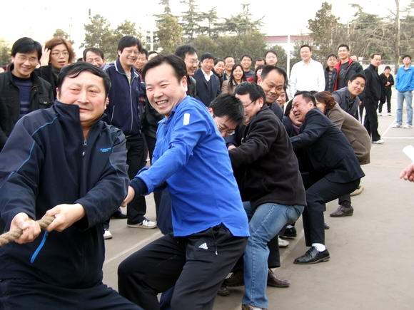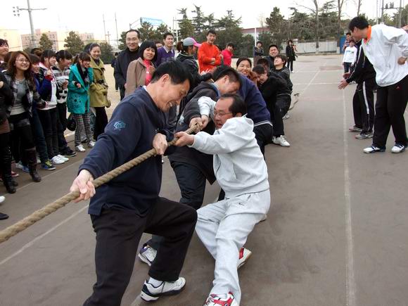 本网讯(范长春)为了全面贯彻落实《全民健身计划纲要》,坚持“全民参与,健康第一”的指导思想,倡导“我运动、我健康、我快乐”的理念,进一步推动我院健身活动的蓬勃开展,3月25日下午,作为今年运动会项目之一的教职工拔河比赛在学院运动场举行,这也标志着我院第十届教职工春季运动会正式拉开了帷幕,在以后的每周二、周五的课外活动时间里,其他更有趣的活动将陆续展开。