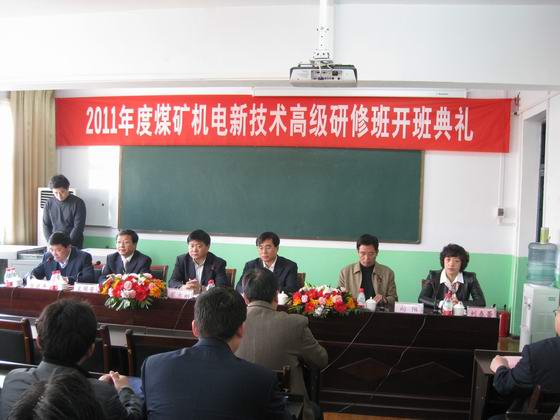 本网讯(于励鹏)4月1日,集团2011年度煤矿机电新技术高级研修班在学院工贸校区开班。集团公司副总经理于励民,平煤股份副总经理向阳、集团公司机电处陶建平处长;学院党委书记蔡志刚、学院李江明副院长;中国矿业大学(北京)孟国营教授等领导出席典礼。