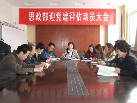 本网讯(刘平)近日,思政部在图书馆召开了迎党建评估动员大会,动员本部全体教师,发扬学院评估精神和示范建设精神,认真开展创先争优活动,以优异的成绩做好迎评促建工作,并切实做好所承担的省高工委对我校思政课建设工作专项检查工作。