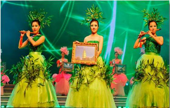 本网讯(孟唐琳)4月22日晚,中国•平顶山“美在鹰城”全国摄影大展颁奖典礼暨文艺晚会在平顶山市新城区会议中心隆重举行,由我院艺术系模特队表演的“秀美鹰城--服饰秀”为“美在鹰城”增美添彩。 由艺术系刘秋蕾老师编排的“秀美鹰城--服饰秀”,旨在展现鹰城秀美的自然山水,表达鹰城儿女对美好生活的憧憬和向往。当悠扬的音乐响起时,只见身着牡丹服饰、手持摄影大赛获奖作品的演员如花中仙子翩跹而至,展示鹰城美丽风景;身着绿竹服饰、手拿横笛的演员如竹林精灵款款而来,奏响鹰城辉煌成就;延绵的万里长城,展现出鹰城自强不息、奋发图强的精神;艳丽的孔雀开屏,描画出鹰城美丽前景。独具匠心的构思、别具一格的服饰、精湛专业的表演带给观众一场视觉的盛宴和艺术的享受,赢得了大家热烈的掌声。