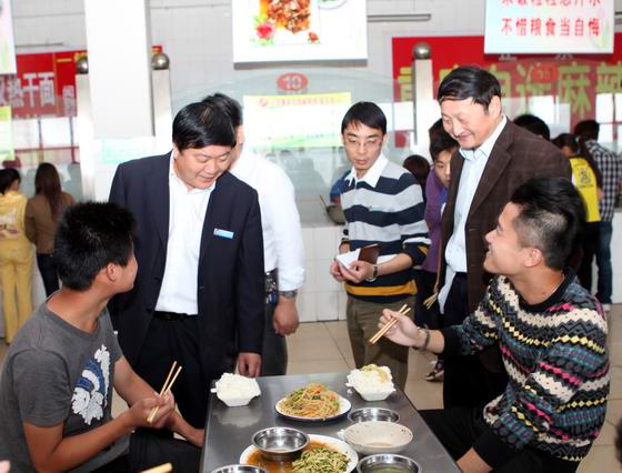 蔡书记先后到各个就餐窗口、后厨操作间进行仔细查看,并与用餐同学亲切交谈,仔细询问他们对饭菜质量、价格的意见。当看到学生餐厅卫生环境良好、饭菜花色品种多样、学生就餐秩序井然,蔡书记露出了满意的笑容。