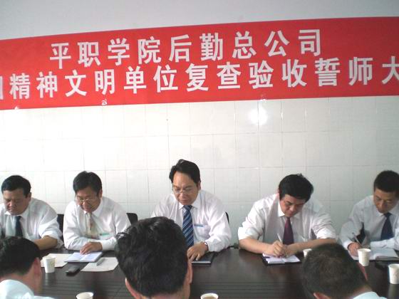 全体人员在物业公司张绍德经理的带领下庄严宣誓:“校兴我兴、校荣我荣、校衰我耻”、“后勤不后、服务先行”、“搞好后勤服务保障,为全国文明单位复检做出新贡献”、“宁愿瘦掉十斤肉,保证复检达优秀”。