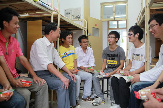 “同学们,大家好。”9月6日上午,机电学院党总支书记刘栓帮和其他几个老师一起,走进该院学生宿舍,看望并慰问了学生代表,向他们送去了香甜可口的团圆月饼以及节日的亲切问候。
