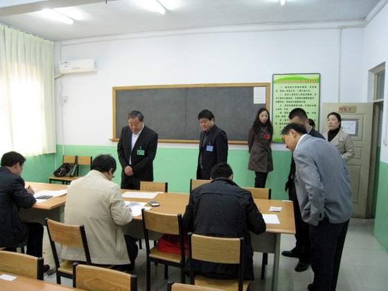 本网讯(李健)10月28日上午集团公司财务人员业务考试在工贸校区举行。集团公司副总经理仵自连、院党委书记蔡志刚等到考场巡查。