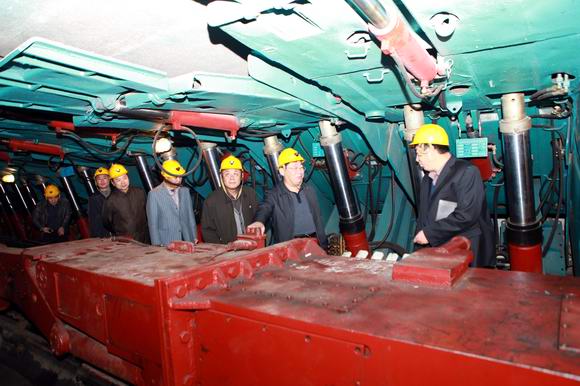 随后,许起和一行在院领导任文杰、郑运廷、李树伟的陪同下考察了我院矿井供电实习实训车间和综采综掘车间。