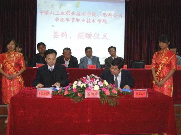 签字仪式上,王家勤书记和余大亮局长分别讲话。他们希望双方院校认真贯彻落实教育部工作安排,加强交流合作,实现发展共赢。王家勤书记还高度评价了我院在示范院校建设过程中所取得的可喜成绩。指出,平顶山工业职业技术学院作为首批国家示范性高职,对口帮扶毕节职业技术学院彰显了风格和责任。希望双方落实协议,密切合作,共同提升高职教育质量,为地方区域经济社会发展做出更大的贡献。