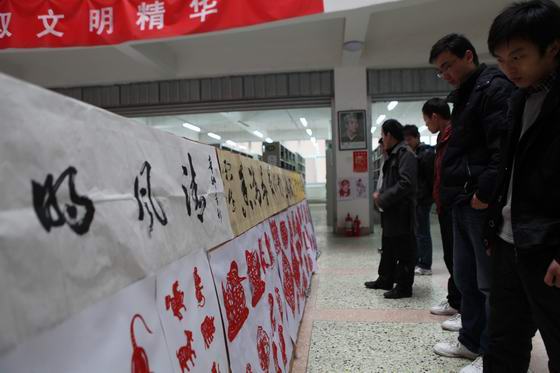 李云生同学是我院机械工程系2011级模具专业的学生,该同学平日里酷爱文化艺术,不但写得一手好字,而且一手精湛的剪纸工艺和印章雕刻技艺更是令人啧啧称奇。此次展出共有李云生同学的书法作品17幅,剪纸作品110幅,印单雕刻作品33枚。一幅幅精美的书法作品和一张张精致的剪纸工艺,在数万典籍的书香氛围中,犹如知识花园中盛开着一朵朵艺术的鲜花,为图书馆增添了一抹亮丽的风景,吸引进图书馆阅读的师生不禁驻足观看。师生们看后纷纷反应,这是文化与艺术的结合,知识与品位的碰撞。在艺术作品装点下的知识海洋里遨游,丰富了知识,陶冶了性情,希望以后能多开展一些这样的文化展示活动。