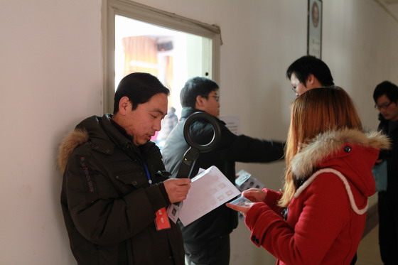17日早上8点,按照考试施令表的具体安排,学院监考老师集中召开考前会,领取试卷。8.45分,考生入场哨音响起。9点整,考务办公室主任姚新兆吹响禁止迟到考生入场的哨音,启封和发答题卡。9点10,考试正式开始。