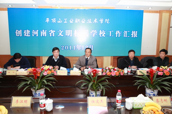 蔡书记最后表示:“平顶山工业职业技术学院由企业举办,建院时间短,积累少,各方面工作,特别是文明创建工作,与兄弟院校相比还有一定差距。各位都是文明建设领域的专家、大家,我们期待着给予我们更多的关爱和支持,给我们传经送宝。”蔡书记说,在十二五期间,我院将按照省高校工委、教育厅的部署,紧紧围绕中原经济区建设,以人为本、追求卓越,扎实开展“两创两争”活动,以文明建设为引领、为带动、为促进,提升办学质量和层次,提高高端技能人才培养水平,为企业和地方经济社会发展做出新的更大的贡献。