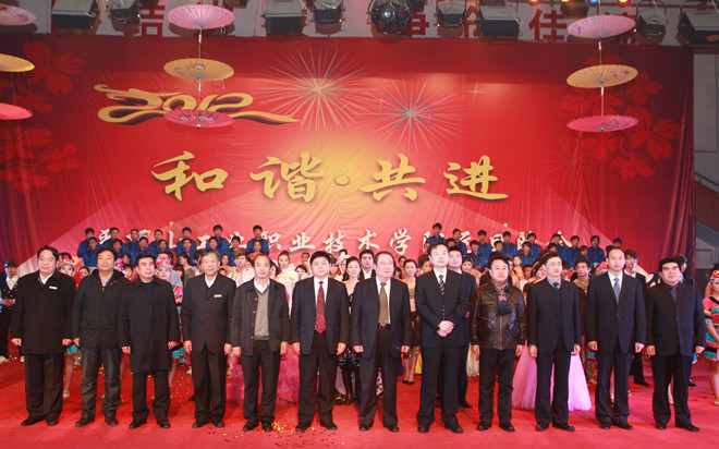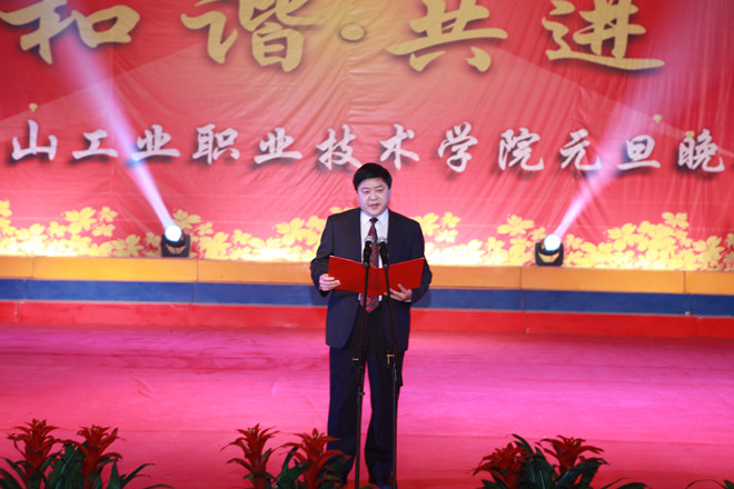 再过5个小时30分,2011年就要过去的时候,以“和谐共进”为主题的平职学院2012年迎新春元旦晚会徐徐拉开序幕。学院党委书记蔡志刚首先致辞。学院名誉院长、工程院院士张铁岗、院长任文杰、党委副书记郑运廷,副院长李幸福、李江明、李树伟、王任远、院工会主席张立方、总会计师徐国强、后勤总公司总经理方万钧、后勤总公司党总支书记张立新观看了演出。晚会由我院工会主办,艺术系承办,学工部、团委、信息中心协办。