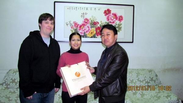 在外教Scott、Alina夫妇的寓所,蔡书记说:“感谢两位老师一年来的辛勤工作,你们不远万里来到学院,是友谊的使者,为学院的发展做出积极贡献,在中国传统新春佳节即将到来之际,我向两位老师表示节日的祝福和美好的祝愿。”