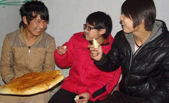 宿舍里,老师和同学们聚集在一起,谈着假期分别后的想念。先巴公保同学多才多艺,平日里常自己写一些诗歌。在春节放假的一段时间里,他用藏语写了一首诗,名叫《献给朋友和老师的一封信》,“首先,祝愿远方的老师和朋友们,身体健康!我父母说道,人生就像一个圆圆的球,在倾斜的地方是由不得自己的。现在回想起过去,就会想起父母和老师教育我的那些真言。。。。。。”小别之后的重逢,生性腼腆的先巴公保也忍不住表达自己对老师和同学的思念之情,用富有磁性的藏语朗诵着他的诗。(魏宏伟)