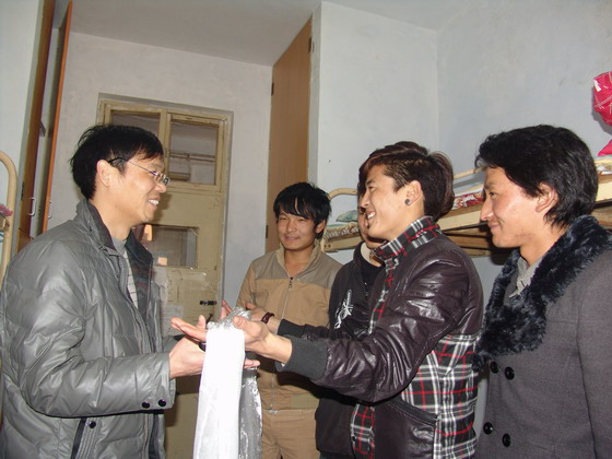 2月13日,正值平顶山工业职业技术学院开学第一天,该院计算机系团总支副书记周刚伟老师像往常一样来到学生宿舍,看望该系来自青海玉树藏族自治州、黄南州等地的藏族学生多杰扎西、先巴公保、娘尕加和扎西拉旦四位同学。在宿舍里,多杰扎西代表几位同学给周刚伟老师献上了洁白的哈达,对学院和老师们对他们学习和生活上的照顾表示由衷的感谢。几位同学还把从家乡带来的糌粑、牦牛肉、酥油、大饼等传统食品与同宿舍的汉族同学们一起分享。他们还带来了青稞酒准备送给对他们照顾有加的老师。