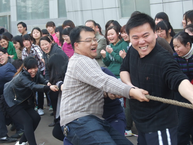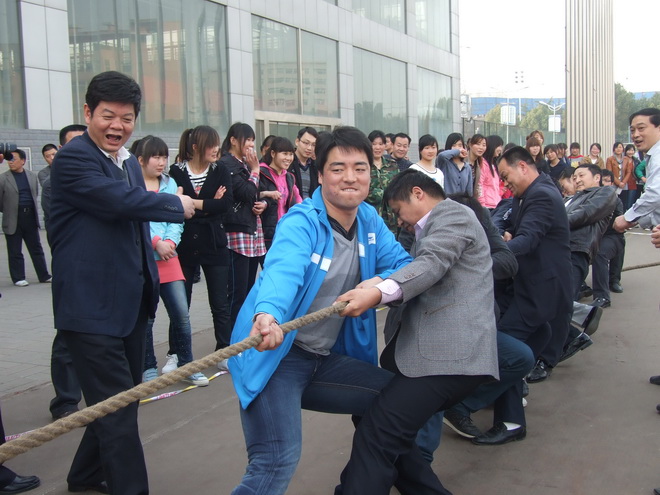 本网讯(范长春)为了全面贯彻落实《全民健身计划纲要》,坚持“全民参与,健康第一”的指导思想,倡导“我运动、我健康、我快乐”的理念,进一步推动我院健身活动的蓬勃开展,3月27日下午, 作为今年运动会趣味活动项目之一的教职工拔河比赛在学院运动场举行,这也标志着我院第十一届教职工春季运动会正式拉开了帷幕,在以后的每周二、周五的课外活动时间里,其他更有趣的活动将陆续展开。