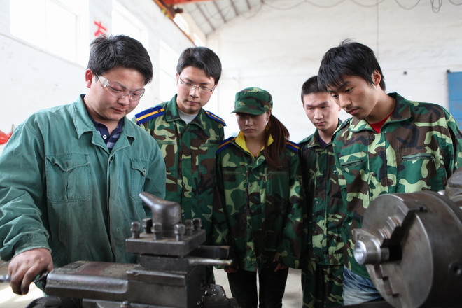 学生在认真听师傅讲解