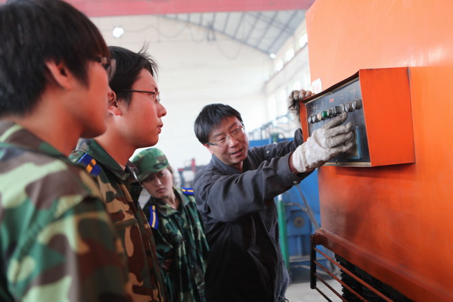 该公司把安全放在第一位,学生每天早上学习的第一件事就是学习公司的安全管理制度和设备的安全操作规程,在保证安全生产的前提下展开生产实践操作。每个工种都配备专门的技术师傅现场进行指导并在师傅的监督下进行实际操作。公司领导班子不定期走进车间检查学生的顶岗实习情况,形成学院考核公司、公司考核师傅、师傅考核学生的三级学习机制,并在顶岗实习结束后在学生中开展各工种技能竞赛活动。一位参与实习的学生这样说道:“通过顶岗实习,让我们把课堂上学到的理论知识和实践知识紧密的结合起来,通过实际操作,既让我们参与了生产,又让我们在生产中得到了煅炼,感谢学院、老师给了我们这次参与顶岗实习的机会,感谢师傅们的亲身传授,这将会更加激发我们对专业学习的兴趣,掌握一技之长也对我们将来的就业带来很大的帮助。我们会努力学习的,加油!”。