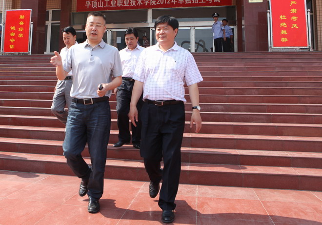 平顶山市招生办公室主任胡彦军等一行四人,受省招办委托,在我院领导蔡志刚、李树伟的陪同下巡视了考场。