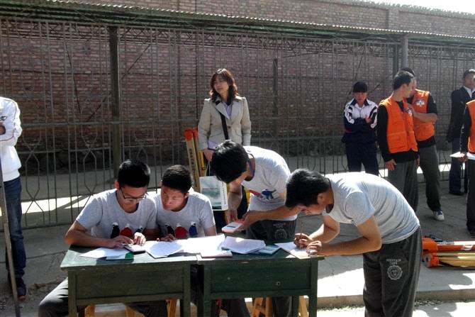 全国29所行业职业院校的136名选手参加了比赛。参赛选手的总成绩由理论知识考试成绩和实际操作考核成绩两部分组成,其中理论知识考试成绩占30%,实际操作考核成绩占70%。理论考试主要考核选手对测量基本知识、小区域控制测量、地形图测绘、施工测量的基本理论和基本知识的掌握程度等。实际操作分为水准测量(时间为80分钟)、导线测量(60分钟)。我院代表队的四名同学,团结协作,以优异的成绩完成竞赛任务,并取得团体第二名的好成绩。