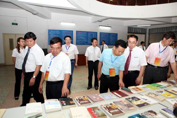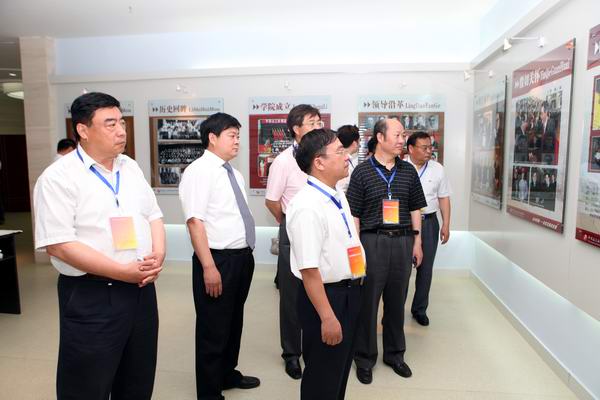 各位专家首先来到位于图书馆二楼的办学成就展室,饶有兴趣地察看了办学成就展示。各位专家对学院的历史沿革、党的建设、队伍建设、文明创建、示范建设、人才培养、发展规划等有了直观的认识和了解。