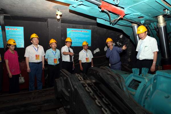 最后,各位专家到综采综掘工作面实训产线查看。资源开发系主任王永祥教授结合真实设备,详细介绍了煤炭 “采、掘、机、运、通” 等生产过程。评估专家观看了实训学生对采煤机、掘进机的工作演示。郭长华、冯中华、张松峰等专家高兴地说:“今天在这里总算实现下井的愿望了。”