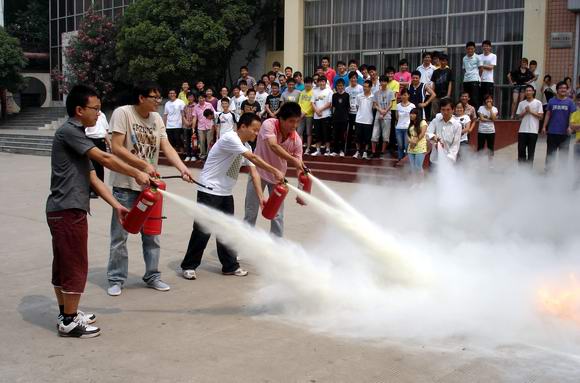 本网讯(王怀玲)本月是学院的安全活动月,为全面贯彻“预防为主,安全第一,防消结合”的消防运动方针,普及消防知识, 6月10日上午,机械工程系联合保卫处,组织本系2010级200余名学生代表开展了应急消防安全灭火演练。