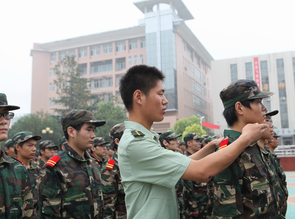 新生军训的内容是队列、内务整理等,主要是基本的军事训练。学生教官每天早上6点钟起床,6.50分吃饭,7点30分开始训练,一直要训练到晚上8点30分。“我感谢学院对我们的信任,同时觉得有很大压力,尤其是面对新生期待的眼神,我会用自己自己的一言一行为他们打造学校形象,上好新生第一课。”2010级学生电力系机电一体化专业学生、学生教官宁胜利说。