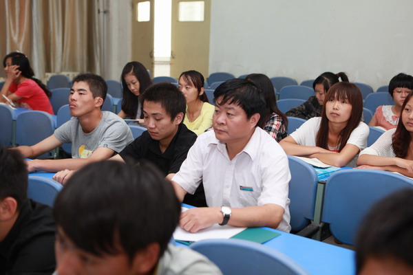 9月17日,是我院2012级新生上课的第一天。一大早,学院党委书记蔡志刚在教务处副处长姚新兆、文教部主任邱燕的陪同下,来到1号教学楼110教室,和90余名新生同学一起,听取了刘春丽老师的讲课。课堂上,刘春丽老师以“做心灵阳光的本质安全人”为题,结合案例,从本质安全入手,向同学们讲述了如何在努力学习的同时,利用三年大学时光,强化自身身心安全健康,做好一个本质安全人。第一节课结束后,在随后的时间里,蔡书记又分别听取了思政部黄飞老师的《思想道德修养与法律基础》、化工系罗晓强老师的《化工工艺》、艺术系李振华老师的《影视鉴赏》等讲课,深入了解教师授课和学生上课等情况。