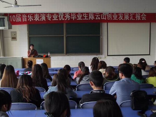 “见到母校各位领导老师熟悉的面孔,我心里非常的激动……”,10月18日,我院艺术系在1号教学楼410教室召开了一场创业发展汇报会,作报告的是该系2010届音乐表演专业优秀毕业生陈云山。