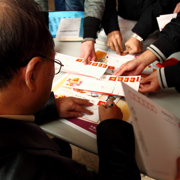 专家为集邮爱好者签字