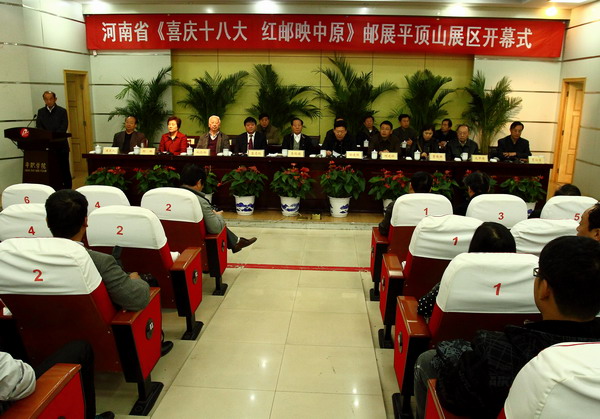 为庆祝中国共产党第十八次全国代表大会胜利召开,歌颂中国共产党的奋斗历程,11月20日,由河南省邮政管理局、河南省邮政公司、河南省集邮协会主办,河南省高校集邮联合会、河南省老干部集邮协会、平顶山工业职业技术学院、平顶山市邮政局、平顶山集邮协会承办的“喜庆十八大 红邮映中原”河南省集邮巡展在职业学院举行。邮展上,一枚枚记载着中国共产党成长、壮大的光辉历程的邮票,成为一部鲜活的党史教科书,吸引了众多来自全省各地的集邮爱好者和职业学院的师生前来观看。河南省委宣传部原常务副部长、省关心下一代工作委员会副主任、省集邮协会顾问、省老干部集邮协会会长葛纪谦;中华全国集邮联合会会士、省集邮协会副会长姚伦湘;河南省邮政公司原副巡视员、省老干部集邮协会副会长潘玉民;河南省邮政公司正处级调研员谢克建; 中华全国集邮联合会会士、省集邮协会副秘书长戈中博;安阳师范学院院长、省高校集邮联合会副会长骆平安;河南农业大学副校长、省集邮协会副会长、省高校集邮联合会副会长柳娜;原中原工学院院长、省高校集邮联合会副会长凌德麟;河南省集邮协会秘书长曹薇娅;河南省集邮协会副秘书长周军;河南省老干部集邮协会副会长兼秘书长梁义国;全国集邮联学术委员程兵秘书长;郑州铁路职业技术学院软件学院副书记、省邮协理事马敬中副秘书长;河南大学校史馆副馆长刘建民副秘书长;中国平煤神马集团党委副书记、河南省集邮协会副会长徐建明;平顶山市委宣传部常务副部长柯运岭;平顶山市邮政局副局长李心昌;平顶山工业职业技术学院党委书记、省高校集邮联合会副会长蔡志刚;平顶山工业职业技术学院副院长、省高校集邮联合会副秘书长李江明;平顶山工业职业技术学院工会主席张立方等参加了会议。会议由学院党委副书记郑运廷主持。