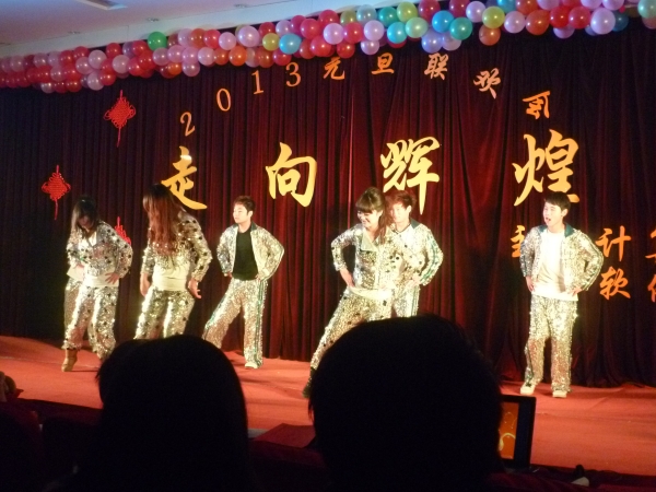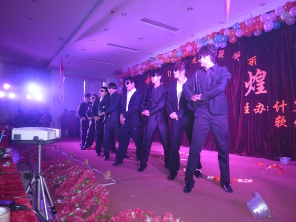 晚会荟萃了小品、情景剧、歌舞串烧、快板、舞蹈,百花齐放。其中小品《牛郎织女》,《王牌对王牌》,《谈判》以其独特的演绎给观众带来了阵阵欢笑。情景剧《同桌的你》,则让大三毕业生回味了即将结束的平职生活。“黑衣人”组合的串烧舞曲以及舞蹈《江南style》,更是引得观众的阵阵喝彩,将晚会推向了高潮。最后,《相亲相爱》的音乐响起,师生一同上台进行合影留念,这是新年绚丽的色彩,是一片欢乐的海洋,我们相信今宵将难忘!