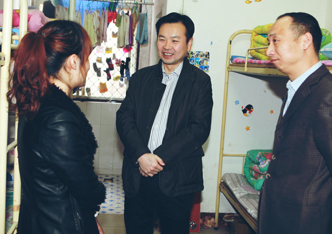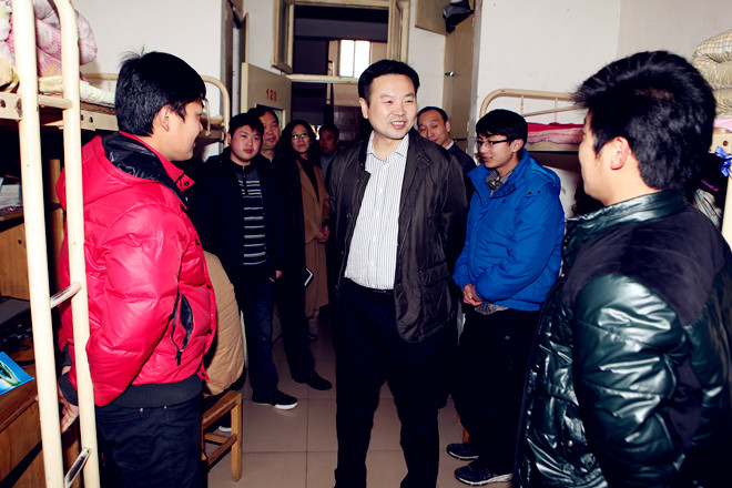 任院长、张主席来到宿舍门口时,正在看书的经管学院会计电算化专业二年级学生刘雪岩急忙放下书本,站起来迎接。任院长亲切地与刘雪岩同学攀谈,询问她的家庭情况和在校学习生活情况。刘雪岩同学告诉院长,她家是周口农村的,父亲在家,母亲在南方务工,弟弟上高中,每个假期都打工挣学费。懂事她希望能好好学习专业,考取会计证,早点毕业,找一份合适的工作,帮助父母。任院长对她说:“穷人的孩子早当家,你很懂事,很自立,值得同学们学习。”