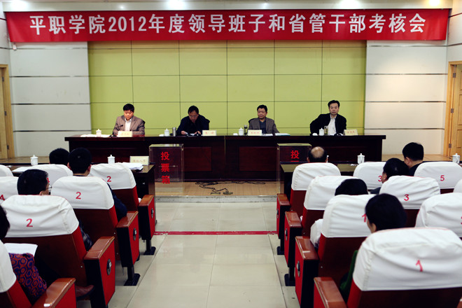 第二考核组组长副组长、省委组织部干部监督处处调研员王明辉,省委高校工委组干处调研员赵玉贤,省委组织部科教企业干部处副处长杨申,省科技厅离退休干部处副处长郭建,省委组织部青年干部处副调研员刘小钟,中原工学院党委组织部副部长郑常青、省委高校纪工委干部李啸风、集团公司组织部副部长张健男等参加考核工作。我院领导班子全体成员和学院中层正职、高级职称人员、集团劳动模范和学院职工代表进行民主测评。