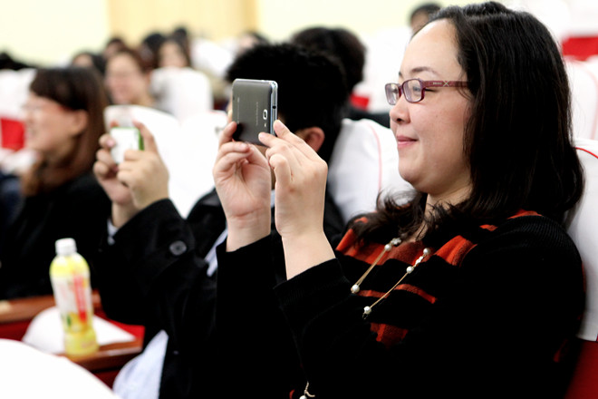 孟唐琳雅俗共赏的讲座,让在座的各学院的年轻教师们听得会意微笑,轻轻点头。台上台下交流融洽,笑声不断。讲座最后,孟老师说:“让我们以良好的德行,文明的举止,优雅的谈吐,博学的头脑,热情的工作态度濡染身边的人,赢得更多的爱与尊敬,在工作中赢得美丽,获得快乐,实现幸福人生!”听众响起的热烈掌声是对孟老师精彩演讲的由衷感谢和肯定。