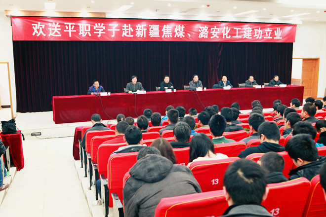10级煤矿开采专业学生段荣文作为学生代表说出了80多名赴新疆就业毕业生的心声:年轻人就要有朝气、有拼劲、选择新疆我们无怨无悔,我们已做好了充分准备,不怕艰辛、踏实工作为父母争气,为母校争光。