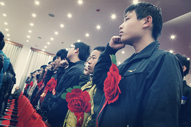 80多人的宣誓响彻整个701教室,感染了每一位参加大会的人,相信他们在新疆能实现自己的人生价值,无悔的青春能在祖国的西部得到升华。