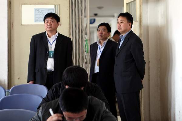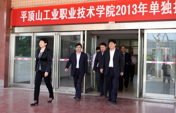当天上午,平顶山市招生办公室副主任邓洪雁、张爱民等巡视组成员,在学院党委书记蔡志刚、副院长李树伟的陪同下巡视了考场。