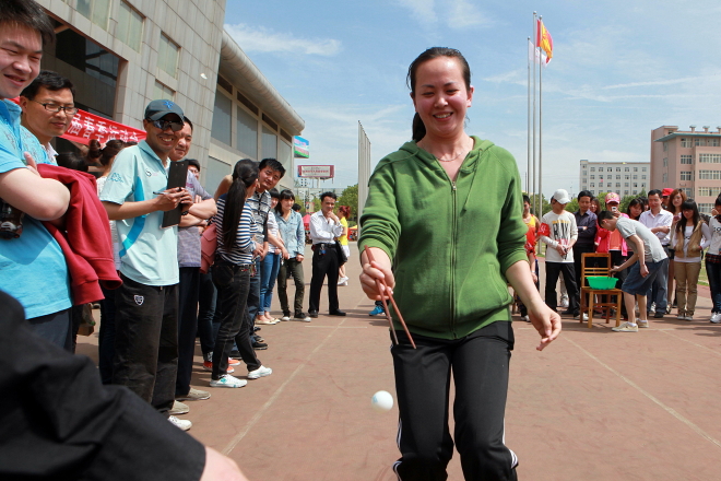 教师在趣味比赛中