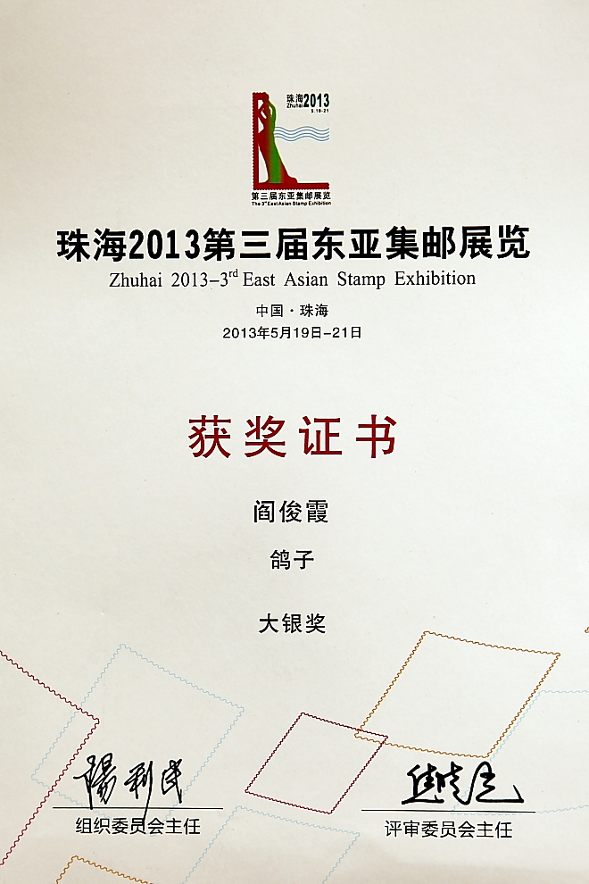 “集邮包含旅游、文化、组织、考古、交友等多个领域,可谓方寸虽小,能容天下。可以激发您对天下风光的美好遐想;可以修身养性,陶冶情操。”我院组织部副部长闫俊霞说。5月19日,2013第三届东亚集邮展览颁奖仪式在珠海举行。闫俊霞代表河南参赛的作品《鸽子》,获得大银奖,这也是我院集邮作品首次在全国性集邮大赛中获得大奖。
